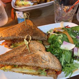 The mini pancakes with it's powdered sugar and slight crispy edges had me thinking that I should've order a double orderand not the veggie burger. My daughter had the French toast which she enjoyed. She said they were just right and she was full after two and half pieces. The veggie burger was really good. It wasn't bland, someone actually took time to add some spices. It wasn't mushy and it was slightly larger than than the bun. It was topped with pickle, lettuce, tomato, red onion and avocado. I think the bun was brioche. The atmosphere wasn't loud just chatter all around maybe some music. There's patio seating also and seating for groups. The staff was wonderful and accommodating. I think it was Miss Morgan that took care of us( I may have spelled her wrong) but she was wonderful. Since I think I'm cool, I probably will return to The Pinmoor on my next East Coast visit.