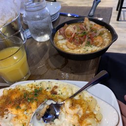 Mother's Day Bunch with my Kids and Grands. This area of Arlington is very nice. Having parking across the street made it very convenient with 2 infants in strollers and a toddler. Surprisingly, the venue was not crowded for our 11:30 reservation. The atmosphere is very bright and open with all the sunshine coming in through the glass windows along with the spacious seating area. For appetizers we ordered Truffle Frites, Pancake Bites Pancakes and French Toast sticks. The Truffle Frites were not seasoned as heavy as I usually like but they were actually quite good. We also ordered 2 bottles of champagne($5 per bottle with weekend brunch) with grapefruit and orange juice. For our main meal, we ordered Chicken and Waffles and Shrimp and Grits. Everything was delicious! The service was amazing and the atmosphere was very relaxing. The babies were even able to sleep. We will be definitely be returning for another good time.